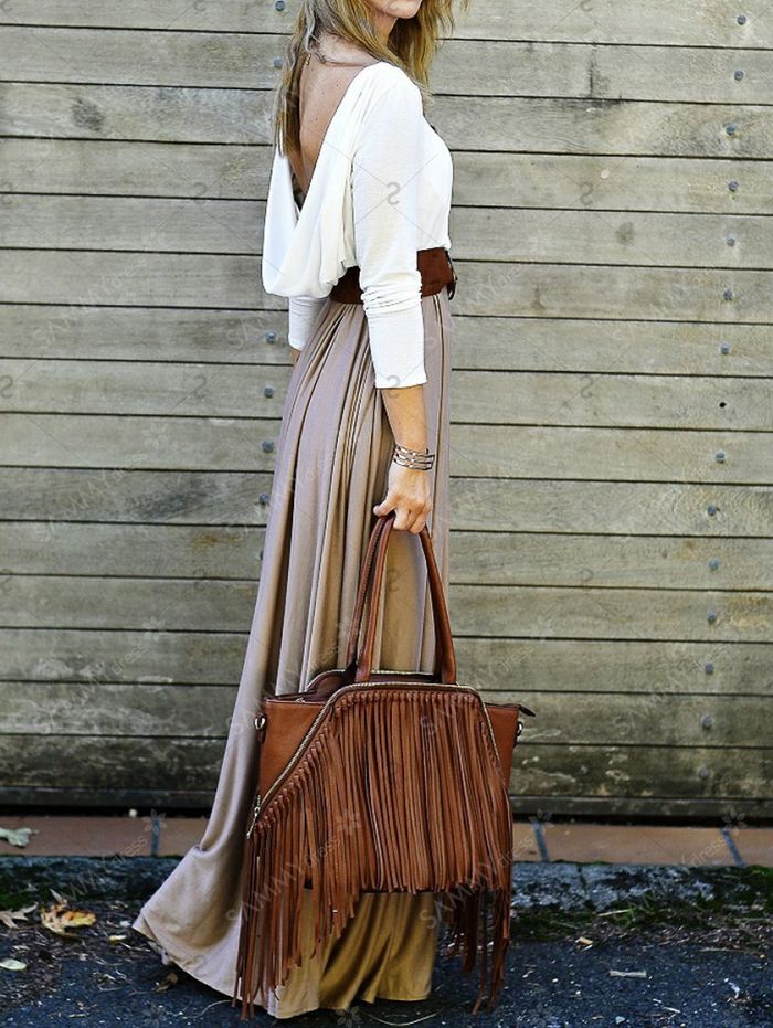 Alluring Long Sleeve Open Back Draped Maxi Dress