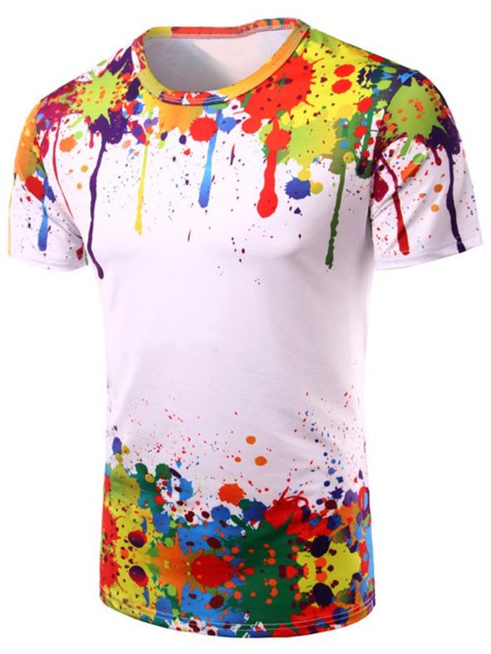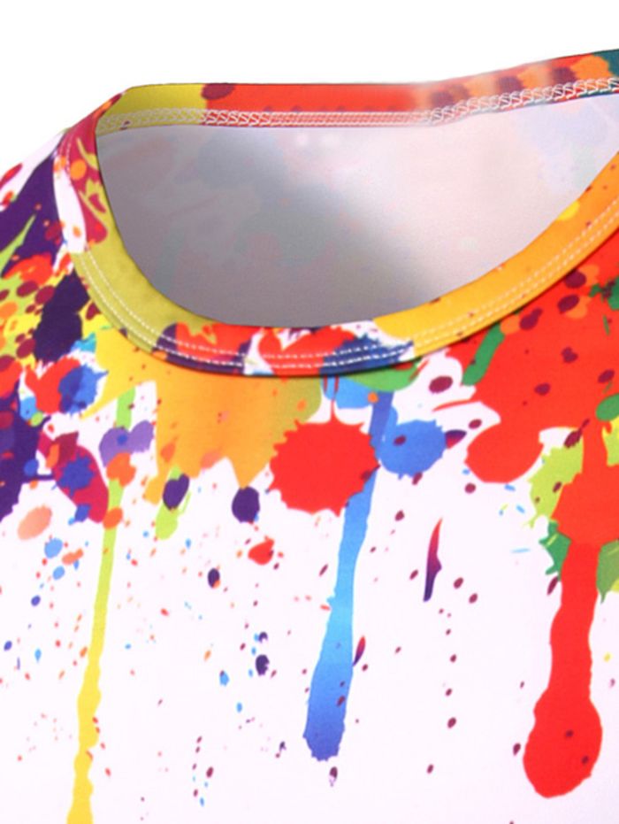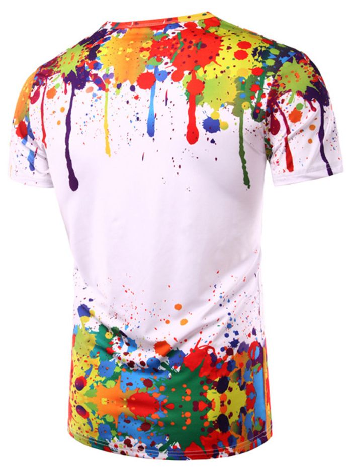 Round Neck 3D Colorful Splash-Ink Print Short Sleeve Men's T-Shirt